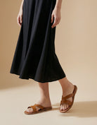 Mules plates avec lanières sur le dessus du pied