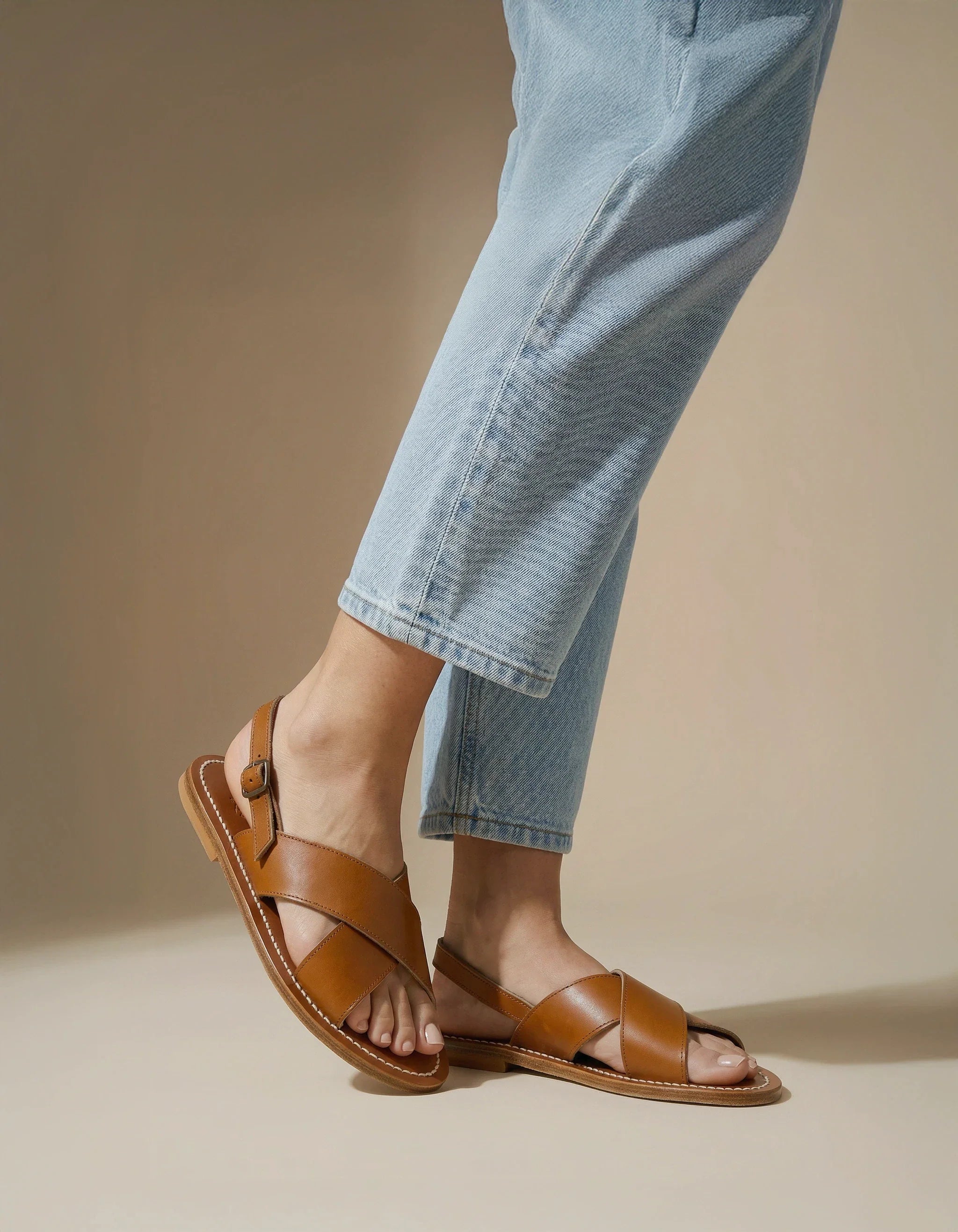 2 brides larges qui se croisent sur le dessus du pied