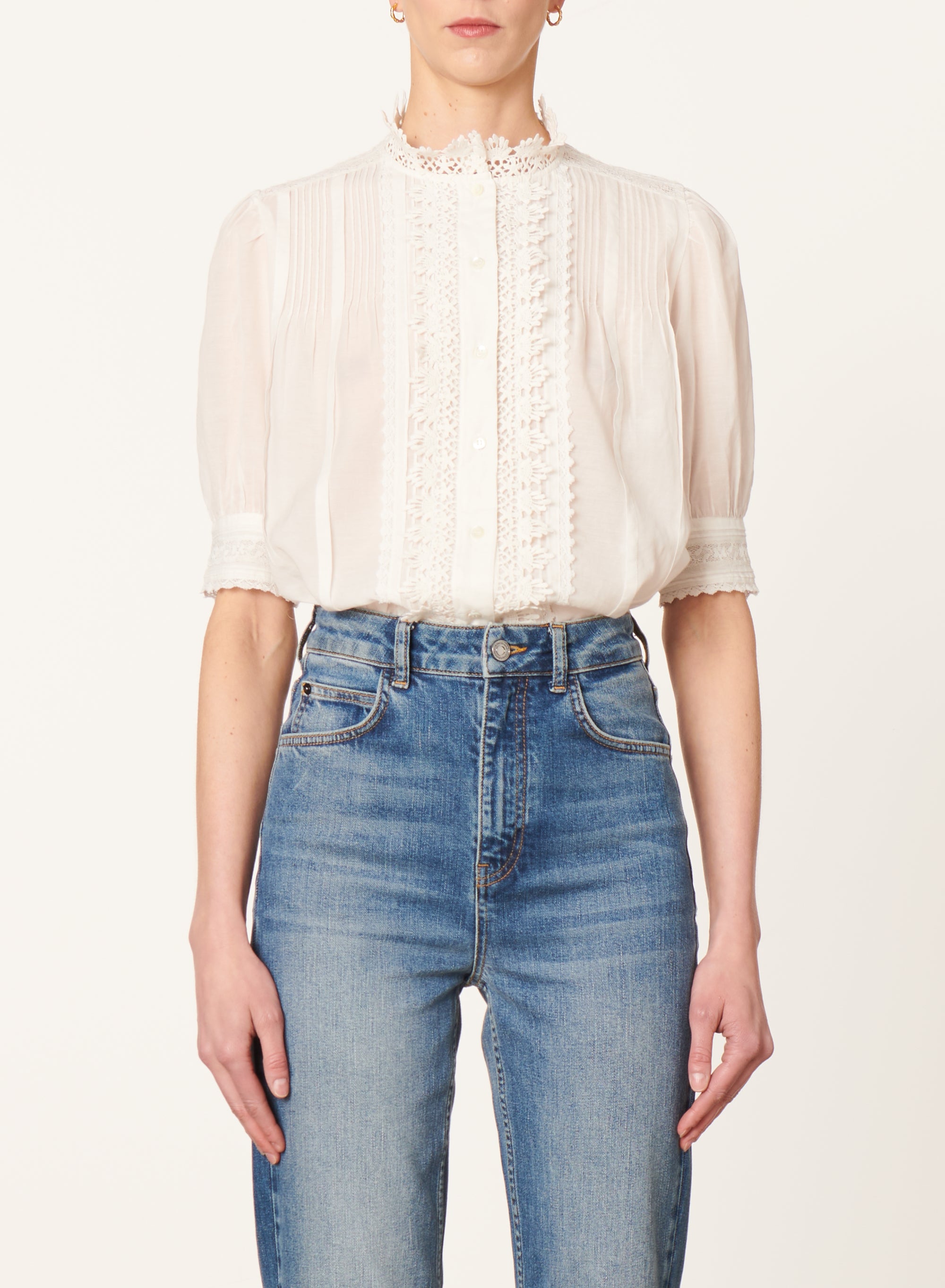 Coupe droite , col montant dentelle