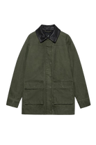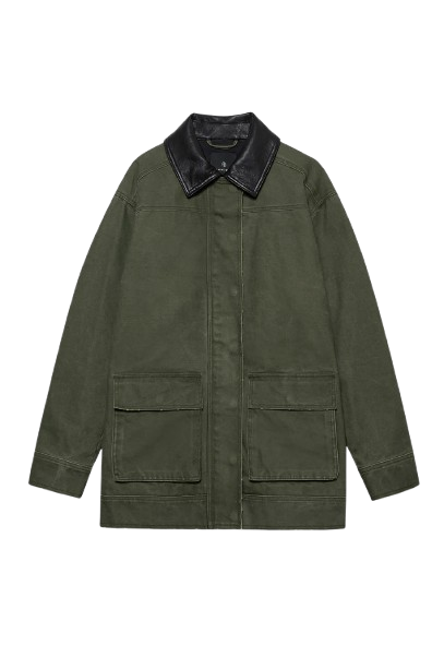 Veste vert army avec col en similicuir noir.